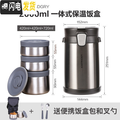 三维工匠304多层学生饭盒成人不锈钢保温饭盒分层餐盒大容量分隔便当盒桶 灰色二层[配304餐具]+保温提袋