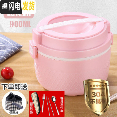 三维工匠学生日式保温桶饭盒便当盒不锈钢保温学生双层大容量饭盒套装2层 北欧粉3层配卡通袋加餐具