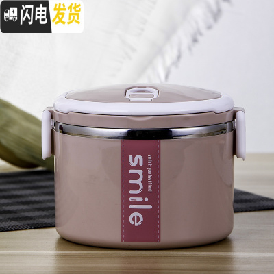 三维工匠圆形304不锈钢饭盒学生可爱上班族便携保温饭盒单层大容量 单层粉色