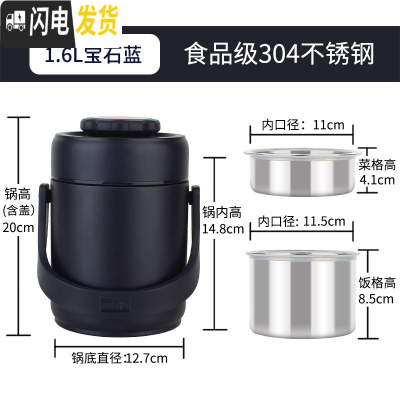 三维工匠保温饭盒便携饭桶家用超长保温桶焖烧杯壶304不锈钢 1.6蓝色