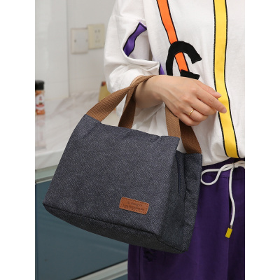 保温饭盒袋手提加厚铝箔帆布便当小方包上班带饭盒圆形拎饭兜大号 三维工匠收纳包