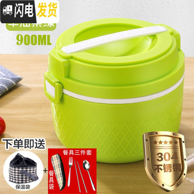 三维工匠日式双层不锈钢保温饭盒上班族长方形学生分隔型便携便当餐盒套装 清新绿双层饭盒+304勺筷+保温袋