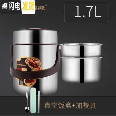 三维工匠保温饭盒304不锈钢超长保温3层多层成人学生真空保温饭桶 不锈钢本色1.7配餐具