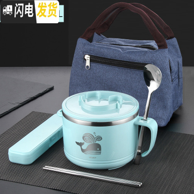 三维工匠304不锈钢饭盒保温学生快餐杯1人便携便当盒儿童女日式上班族饭缸 蓝色饭盒(鲸鱼图案)+304勺筷盒+保温袋
