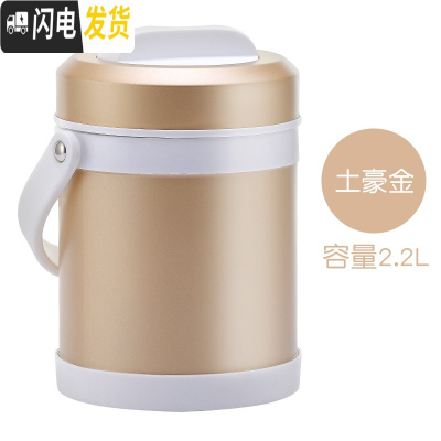 三维工匠保温饭盒304不锈钢超长保温3层多层成人学生真空保温饭桶 食格款金色2.2配餐具+保温袋[防溢密封]