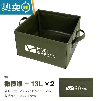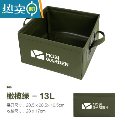 敬平水盆户外旅行露营防水便携易收纳多功能盛水方形折叠水桶 橄榄绿(13L)