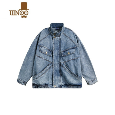 YANXU美式高街复古vineag重工洗水牛仔外套男复古拼接宽松休闲百搭夹克