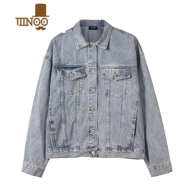 YANXU欧美高街风复古洗水做旧宽松牛仔夹克 男女纯色简约百搭休闲外套