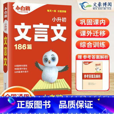 [小升初]文言文186篇 小学通用 [正版]2024万唯小白鸥小升初文言文186篇小学文言文阅读理解专项训练书古诗文大全