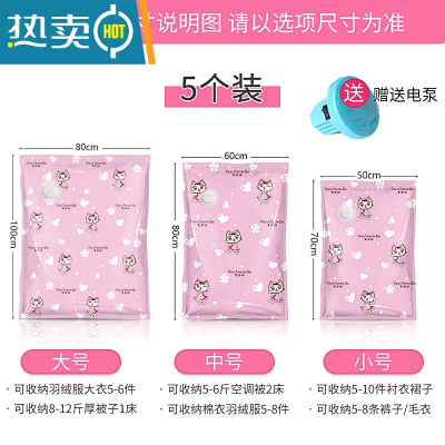 敬平真空压缩收纳袋大号家用棉被子整理旅行李箱衣物加厚款装衣服袋子 5个装[送电泵] 大号(100*80cm)压缩袋