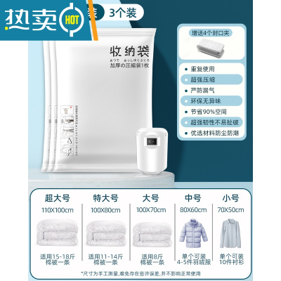 敬平真空压缩袋收纳袋衣物衣服被子家用抽空气棉被行李箱专用袋子1487 3个+送电泵 特大号(100*80cm)