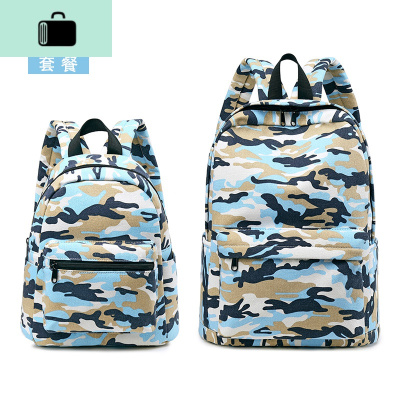 亲子双肩包帆布男女孩迷彩旅游轻便休闲儿童背包幼儿园小学生书包NEW LAKE 海军蓝套餐