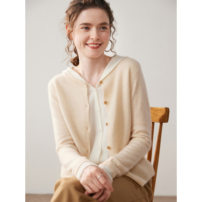 女士连帽拼色假两件山羊绒针织开衫外套上衣25秋冬季气质优雅软糯
