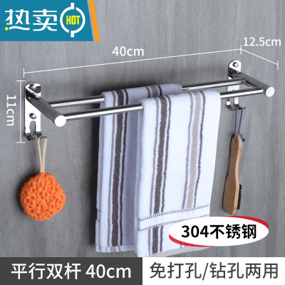 敬平加厚304不锈钢毛巾杆多层毛巾挂单杆双杆浴巾挂浴巾架浴室毛巾架 304不锈钢平行40cm双杆(粘钉浴室置物架