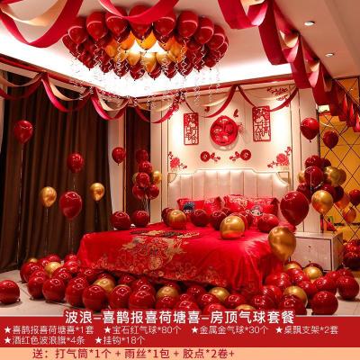 结婚客厅套装婚房装饰新房布置用品喜字拉花婚礼卧室场景波浪旗HL天赐良缘(全红纸扇款)房顶气球套餐