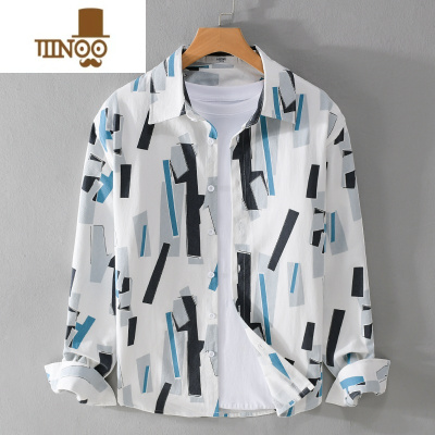 YANXU设计感衬衫男长袖潮流个性雅痞上衣服日系潮牌印花衬衣外套