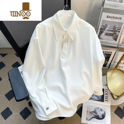 YANXU痞帅polo衬衫男长袖内搭垂感衬衣夏季套头bf韩版宽松潮流休闲上衣