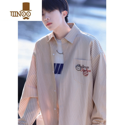 YANXU秋季日系条纹衬衫男2023新款潮牌长袖衬衣感痞帅宽松休闲外套