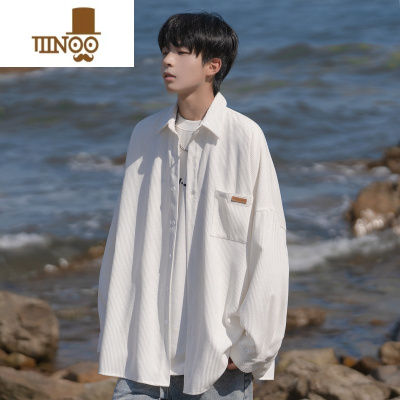 YANXU几物jiwuus 日系复古秋季灯芯绒长袖条纹衬衫男女同款宽松外套
