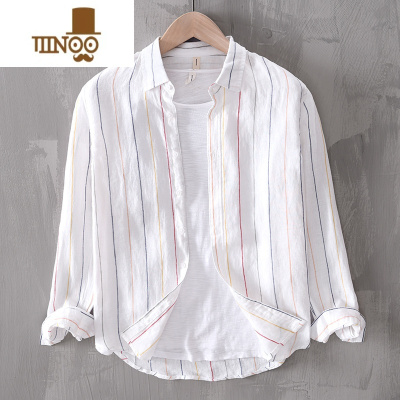 YANXU2022新款弹力款日系小清新拼色长袖衬衫男士纯季大码休闲条纹宽松