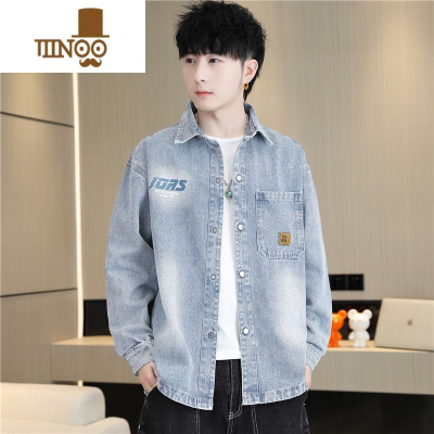YANXU青少年秋装牛仔外套男大童上衣帅气长袖衬衫2023新款高中学生衣服