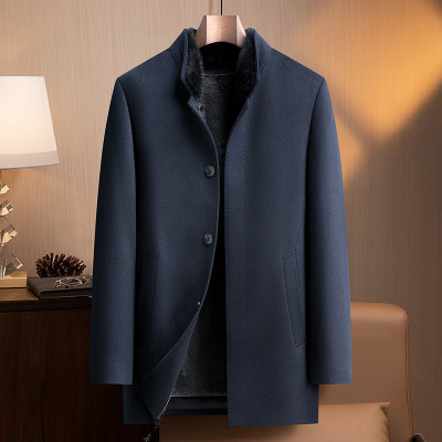 秋冬中长款水貂毛领兔毛内胆含羊绒桑蚕丝羊毛双面呢大衣男士外套