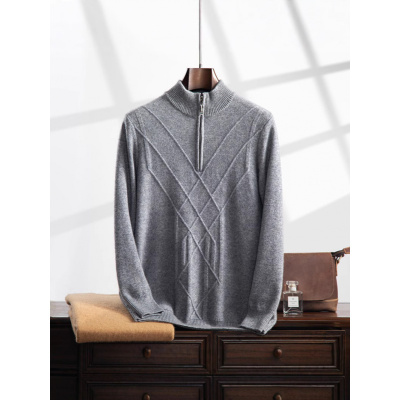 秋冬新款提花加厚商务羊绒青年男士半高领拉链针织羊毛衫轻奢毛衣