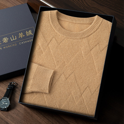 软糯山羊绒春季新款男士男装宽松圆领提花套头打底针织衫毛衣