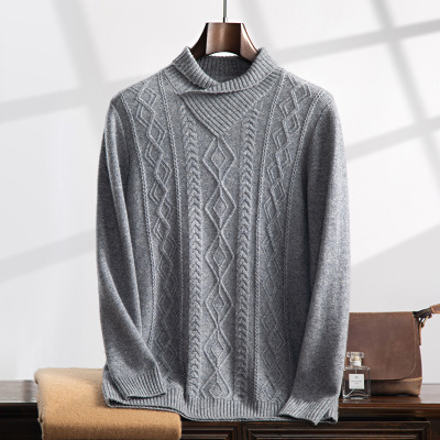羊绒衫圆领宽松型斜纹提花打底衫秋冬新款男商务休闲套头毛衣