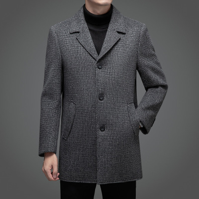 恒源祥2024秋冬新款男士中长款外套羊毛呢加厚风衣爸爸羊绒大衣男