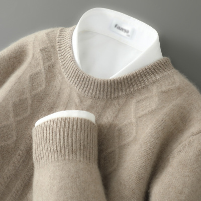 秋冬新款男士商务羊毛衫圆领套头宽松大码加厚毛衣打底针织羊绒衫