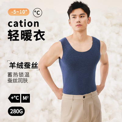 羊绒蚕丝男士保暖背心男发热无痕打底内衣秋冬季内搭外穿保暖马甲