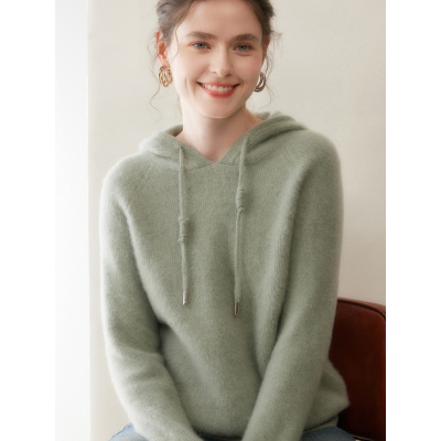 元宝针羊绒帽衫秋冬新款女厚款连帽打底衫优雅风纯色保暖毛衣