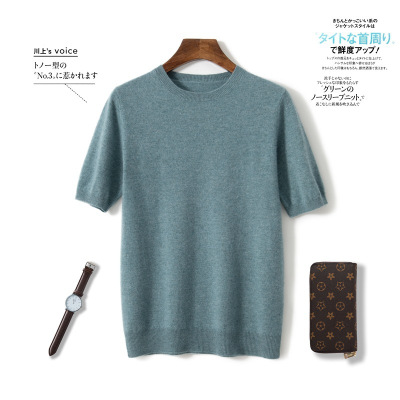 秋冬新款山羊绒短袖男士圆领半袖毛衣纯色打底衫外穿商务针织衫