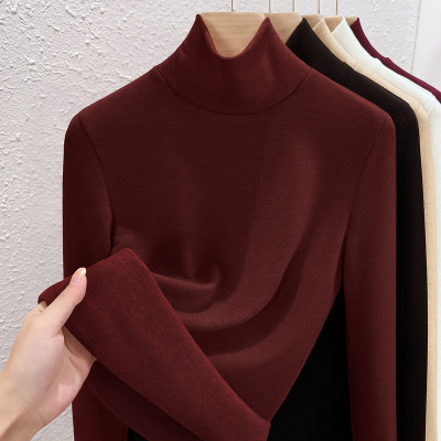 德绒高领打底衫女内搭高领冬季加绒加厚蚕丝羊绒发热女士保暖上衣