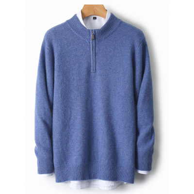 休闲商务羊毛衫男毛衣半高领半拉链羊绒衫保暖纯色针织打底衫