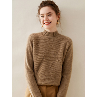 秋冬新款菱形堆堆领羊绒针织衫女高领气质时尚内搭打底衫宽松毛衣