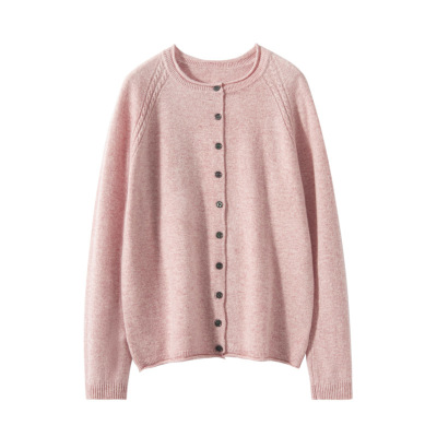 圆领羊绒衫秋冬新款女士卷边针织开衫韩系风宽松显瘦保暖外套