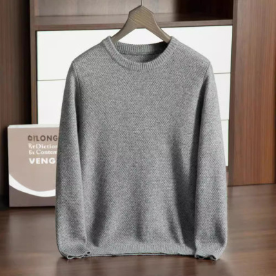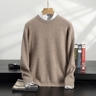 男式商务休闲三股加厚桂花针山羊绒秋冬新款长袖圆领套头打底毛衣
