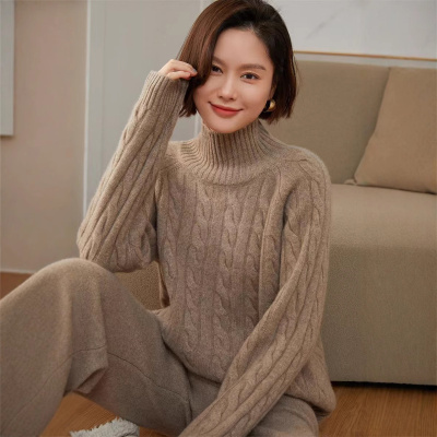 加厚山羊绒复古麻花纯色高领女士宽松休闲百搭秋冬新款针织衫长袖