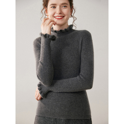 花边半高领纯色山羊绒修身显瘦气质百搭套头长袖针织打底衫毛衣