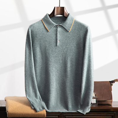 POLO领羊绒衫秋冬新款男拼色上衣中年宽松型韩版套头保暖毛衣