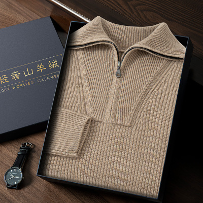 秋冬新款男士羊绒衫元宝针海军领半拉链针织打底衫加厚套头毛衣