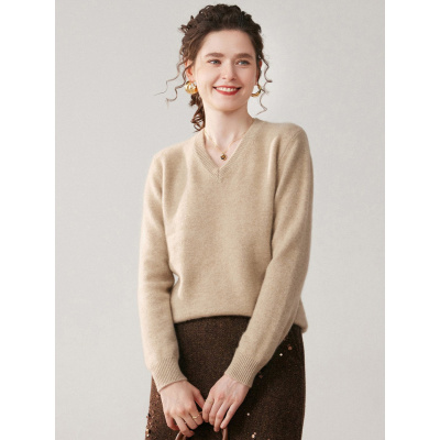 工厂秋冬纯色山羊绒V领厚款针织宽松套头百搭打底衫女毛衣女
