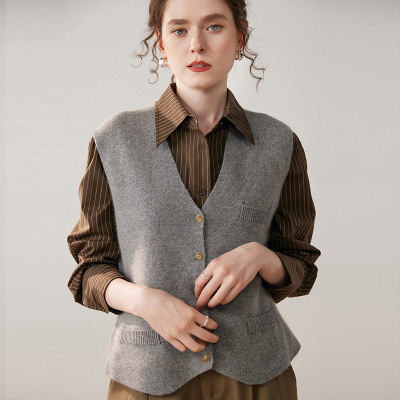 气质V领针织马甲女宽松轻奢时尚山羊绒开衫坎肩秋冬加厚保暖外搭