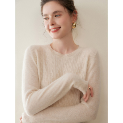 秋冬新款山羊绒衫女圆领套头毛衣宽松小麻花保暖打底针织长袖上衣