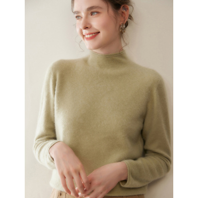 秋冬新款山羊绒针织衫女半高领加厚套头亲肤毛衣套头针织打底上衣