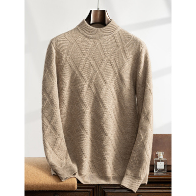 秋冬新款羊绒衫男半高领加厚全身席编提花商务休闲宽松大码毛衣潮