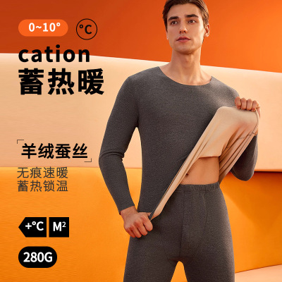 男士保暖内衣男新款羊绒蚕丝发热内穿无痕秋冬季磨绒秋衣秋裤套装