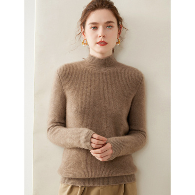 秋冬新款山羊绒元宝针半高领纯色加厚宽松打底衫毛衣女羊毛针织衫